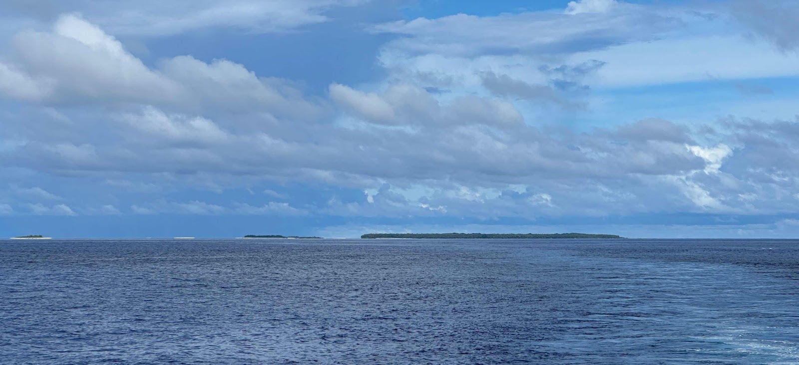 Sorol is an uninhabited atoll in this region. It was recently still inhabited, so, if you look, you can still see the platforms they had for their buildings. There were two islands close together where we landed on the beach, and went to look at the birds and turtle tracks. However, the two of us walked along the beach to the other end, and snorkelled back.In the afternoon we snorkelled from the tenders. My camera ran out of battery power, and the big ones definitely escaped being photographed - a turtle and an enormous grey reef shark that zoomed past us.
