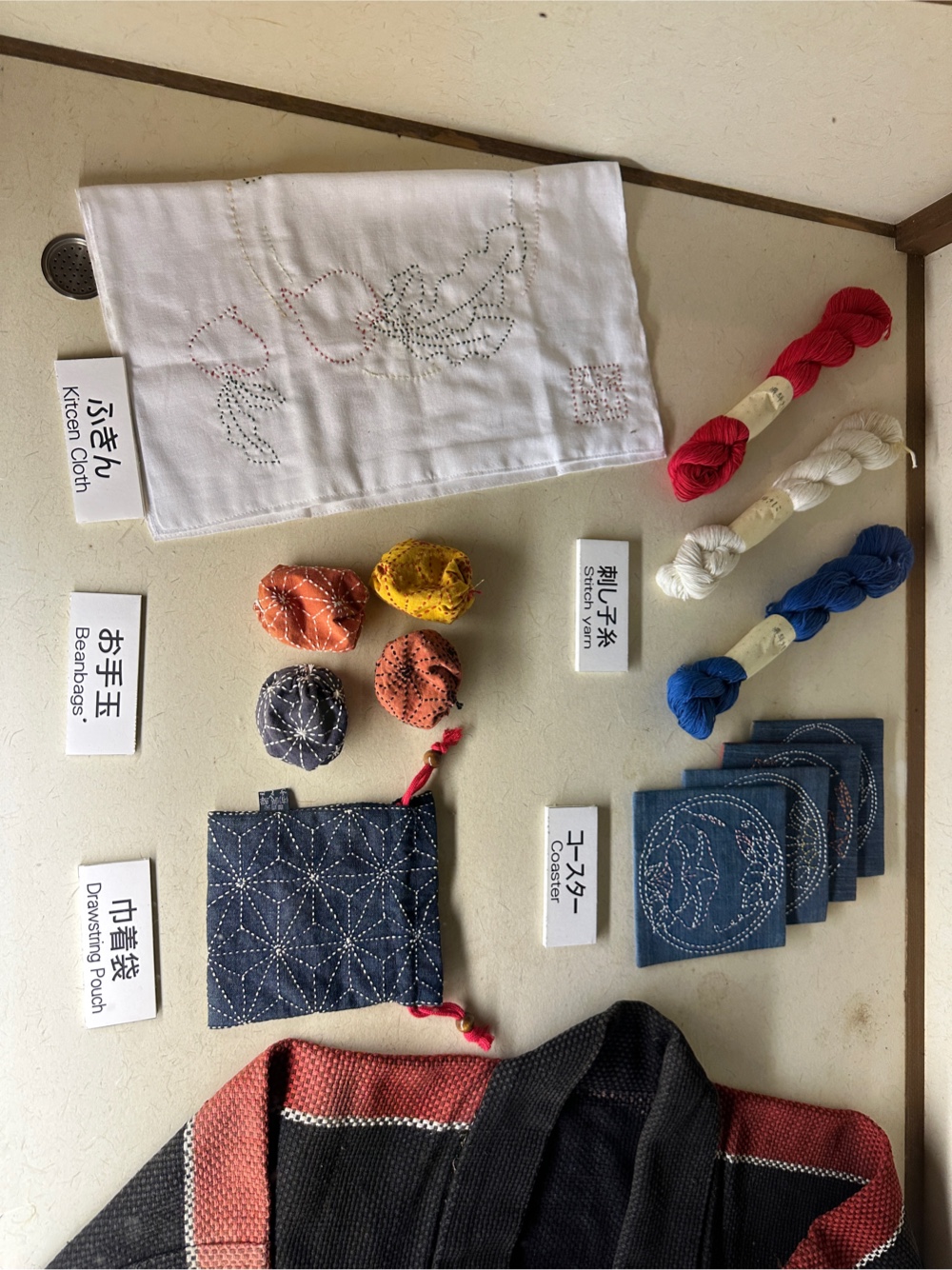 or they had displays of different occupations or activities common in the traditional way of life. I was particularly interested in the sashiko information in one of the houses.