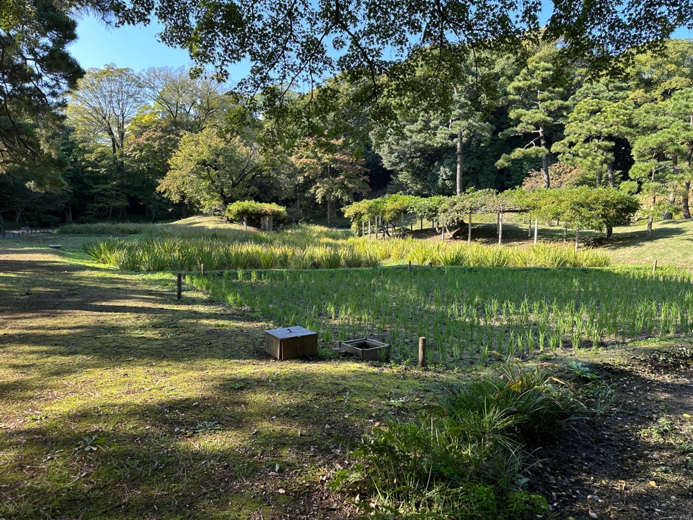 There was a patch of rice, which the original owner included in the garden to show his son how difficult rice farming was. This was in the iris valley. The trellis is growing wisteria.