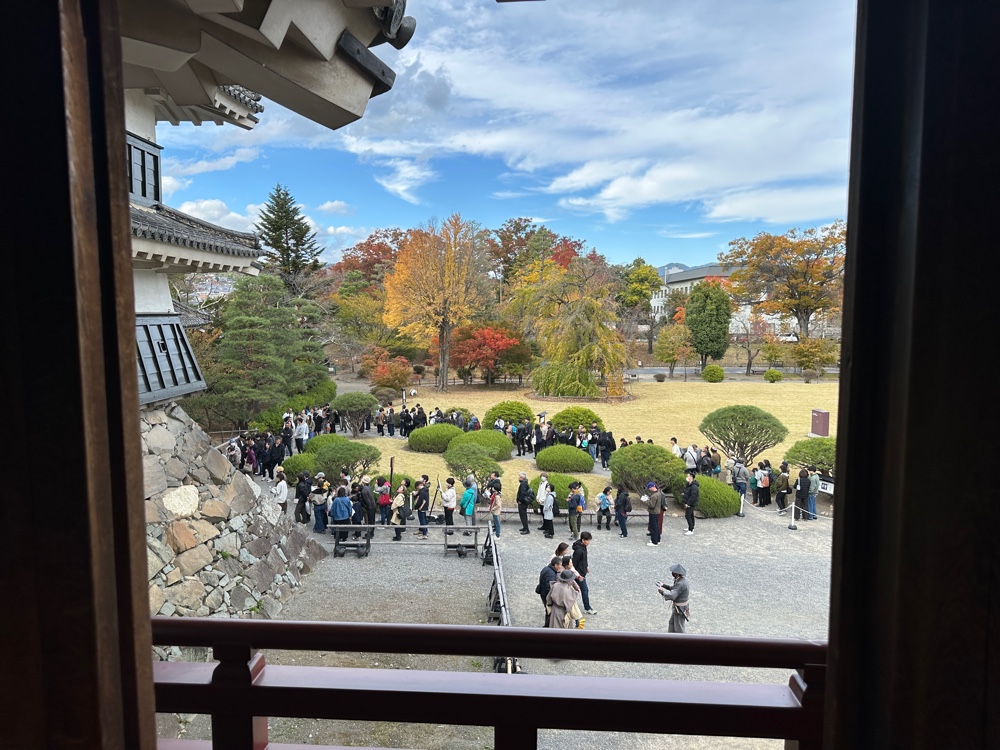 With the restoration of the emperor in the late 1800s, all the old castles were destroyed, except twelve. Matsumoto Castle is one of the twelve. It was saved by some very determined locals who didn’t want their heritage destroyed. It had become derelict, but years of restoration have returned it to a place where you can walk through it to the top. It once had the top floors leaning like the tower of Pisa. The castle looks like it has five floors from the outside, but there’s actually an extra floor inside, between the second and third floor.