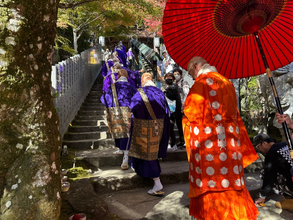 I saw a parade of priests going up to the pagoda.