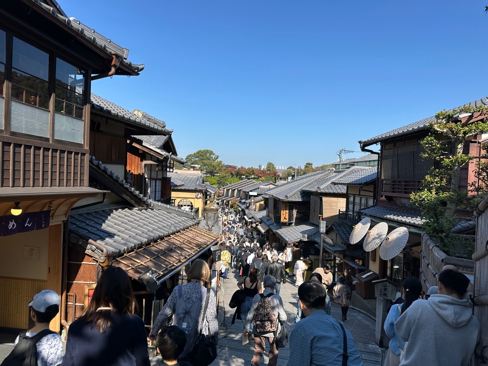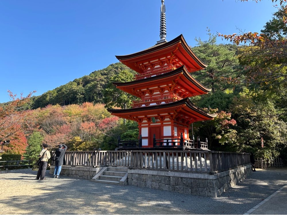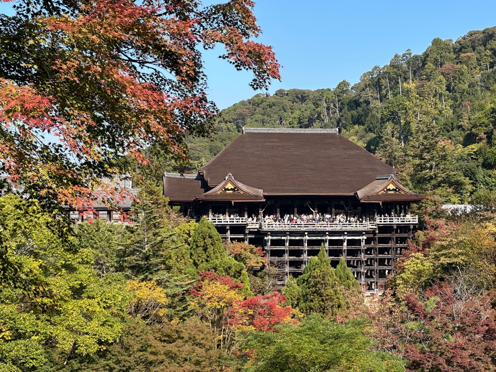 Today we visited the Philosopher’s Walk in Kyoto. We actually walked and walked and walked. But to begin, we caught a taxi to Kiyomizu-dera Temple. We were dropped off a fair bit before the temple because the street was so crowded, but the crowds had thinned a bit by the time we reached the temple. The temple itself has several floors of footings, which must be very strong to hold the crowd!