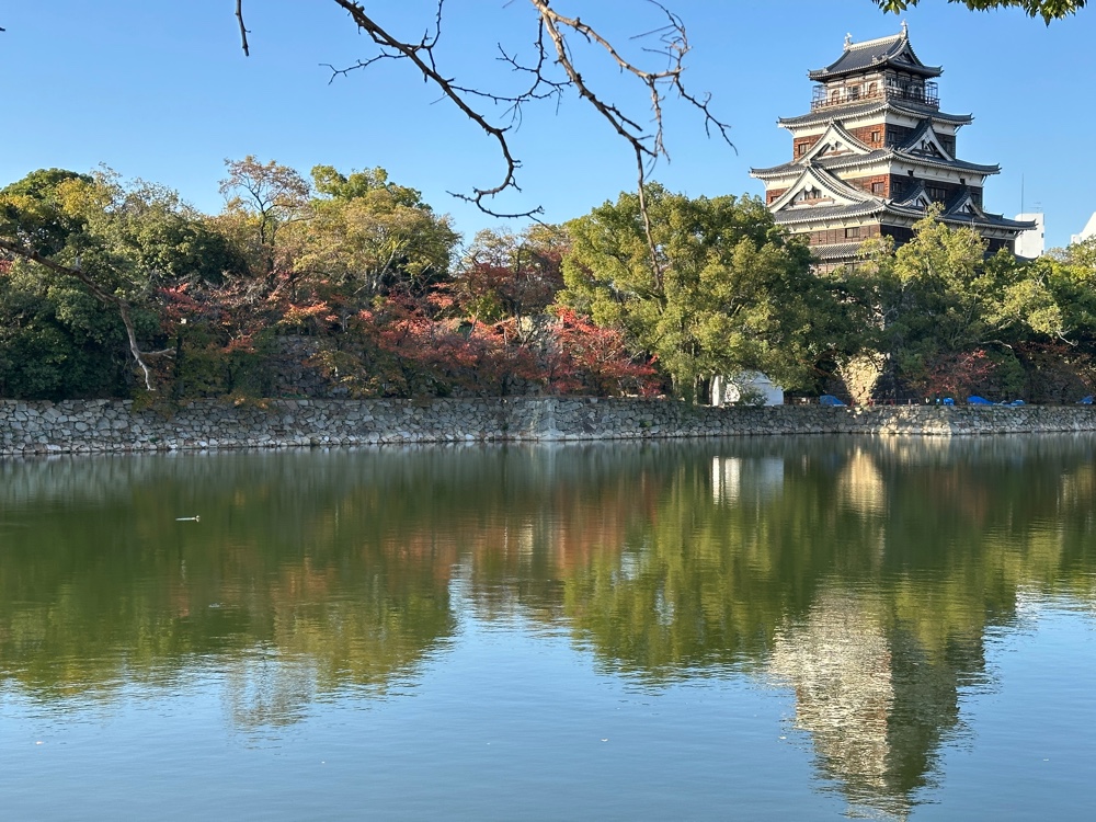 I was at the Shukkeien garden before it opened and the guard shooed me away, so I gradually worked my way toward Hiroshima castle. This castle was completely destroyed by the bombing as it was within the area that was basically levelled. Because Hiroshima was a centre for heavy industry during the war, there had been a lot of bombing, and one reason so many school children died from the atomic bomb was that they were making firebreaks by pulling down houses (lthough the memorial concentrated on them, one in ten of the victims was Korean, as there were many forced labourers from Korea). Shortly after the war, the castle was rebuilt quickly, without much thought of authenticity, so it’s a castle that isn’t much visited. But I’d think that the rock base and the moat would be authentic, since castles are usually built on top of the base, rather than being structurally contiguous.